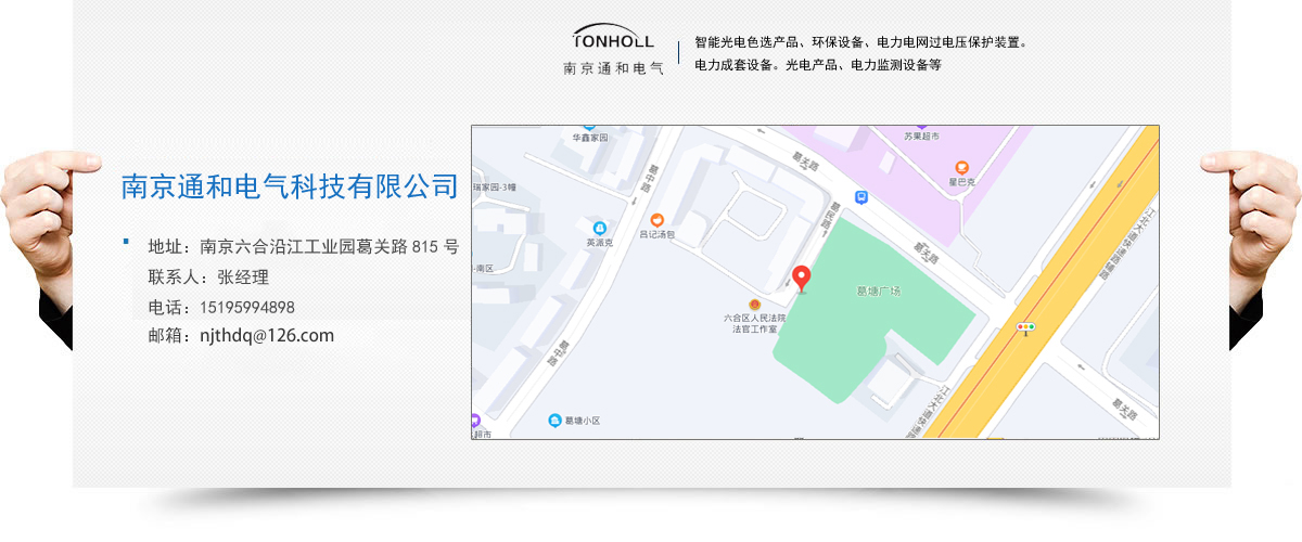 南京通和電氣科技有限公司是致力于研發(fā)、 生產(chǎn)防雷產(chǎn)品的科技型企業(yè)。公司集研發(fā)、生產(chǎn)、銷售、服務(wù)為一體,目前主要產(chǎn)品為:智能光電色選產(chǎn)品、環(huán)保設(shè)備、電力電網(wǎng)過電壓保護(hù)裝置。電力成套設(shè)備。光電產(chǎn)品、電力監(jiān)測(cè)設(shè)備等。公司秉承“誠信。創(chuàng)新、和諧。卓越”的經(jīng)營理念,研發(fā)創(chuàng)新的專業(yè)態(tài)度服務(wù)客戶,追求卓越,以其高水準(zhǔn)的產(chǎn)品品質(zhì)和良好的企業(yè)信譽(yù),在發(fā)展進(jìn)程中得到了社會(huì)廣泛認(rèn)可。